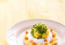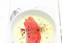 Vellutata di finocchi e porri all’aneto con sashimi di salmone