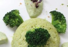 Broccoletti al sedano e tofu in sformato con mousse ai cannellini