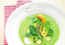 Crema di zucchine crude con spinaci e rucola