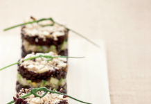 Tortini di riso Venere con croccante di mandorle e semi