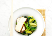Wok di tofu marinato all’aglio e zenzero con porri e spinaci
