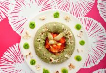 Ciambella di quinoa al pesto con salsa di asparagi bianchi al limone