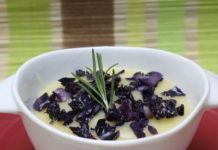 Vellutata di patata all’aglio con cavolo rosso croccante al rosmarino