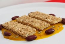 Tofu croccante al rosmarino e sesamo con crema di zucca