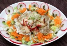 Insalata mista con pere, pecorino e condimento agrodolce di fichi