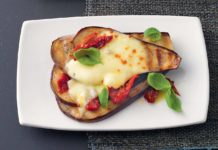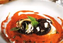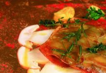Tasca di patate ripiena con funghi porcini su carpaccio di funghi porcini