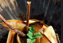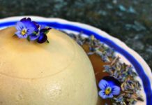Mousse ai fiori di lavanda con salsa di pesche