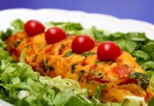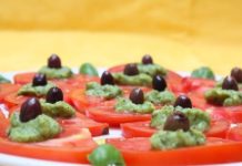 Sugo saporito di pomodori con pinoli, olive e fiori di zucca tostati
