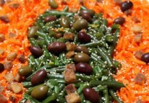 Insalata di fagiolini e carote con tempeh croccante e olive