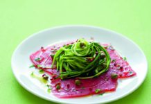 Carpaccio di tonno con “spaghetti” di zucchine marinate