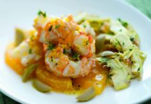 Scampi all’arancia con carciofi marinati