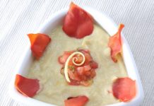 Vellutata di fave con cipollotti allo zenzero e pomodori