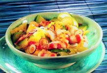 Crema di avocado con cipolle in agrodolce