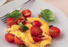 Uovo strapazzato con pomodori e basilico