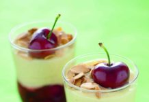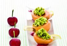 Nespole con farcia ai pistacchi in crema di ciliegie