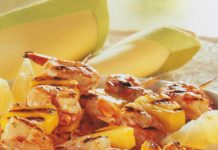 Timballo di riso bicolore al salmone e zenzero con gamberoni al vino bianco