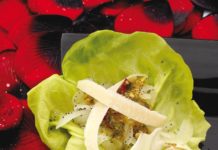 Tartara di salmone e gamberi con rafano e coriandolo fresco