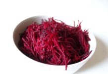 Fiore rosso di patate all’aglio, carciofini e valerianella