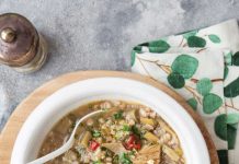 Zuppa di grano saraceno con carciofi, cipollotti e prezzemolo