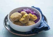 Polpette speziate di lenticchie con cavolo rosso in insalata