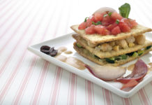 Sfoglie al sesamo con pomodori, ceci e zucchine