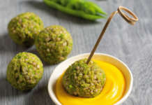 Polpette di piselli e grano saraceno con crema allo zafferano