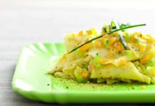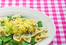 Farfalle e taccole in salsa di finocchi allo zafferano con semi di papavero