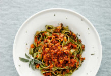 Tagliatelle all’ortica con ragù di lenticchie e funghi