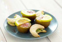 Vaschette di kiwi con crema e biscotti alle mandorle