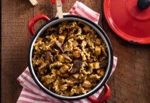 Strudel di fagioli borlotti e funghi con cavolini saltati alle erbe