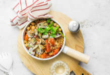 Cuscus integrale con vongole piccanti, ceci e pomodori