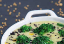 Vellutata verde con broccoletti, miglio e sesamo nero
