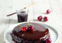 Torta al cioccolato e ciliegie con glassa al cioccolato