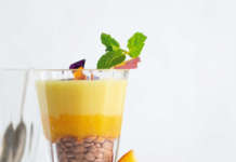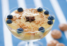 Pesche a strati con crema, amaretti e mirtilli