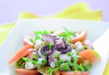 Insalata di polpi speziati con pesto di rucola e pistacchi