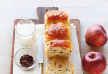 Brioche al succo fresco di mele con fave di cacao, uvetta e sciroppo d’acero