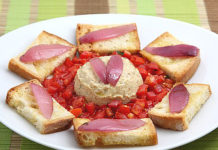 Spuma cremosa di ceci e tofu affumicato con pomodorini