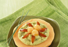 Melone con crema di avocado all’erba cipollina e pomodorini