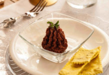 Mousse di fagioli azuki e nocciole con sfogliette alla curcuma
