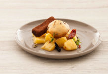 Chutney di ananas con muffin di farro e mattonella fondente