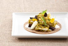 Sformati di roveja con vellutata all’arancia e croccanti di lino