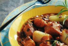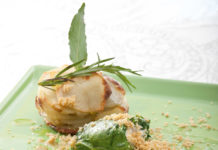 Doppia zuppa di ceci e zucca con branzino alle noci