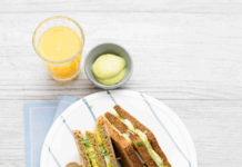 Club sandwich integrale con uova e hummus all’avocado