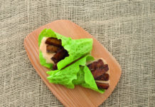 Coni di lattuga con seitan caramellato e salsa di arachidi