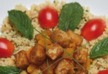 Cuscus ai ceci ed erba cipollina, zucca e carote alla menta, tofu croccante alla...