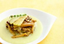 Straccetti di seitan con funghi porcini e mela in crema ai porri