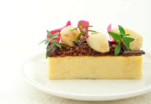Polenta dolce con crumble di cioccolato e pere caramellate