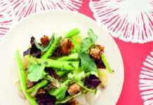 Insalata tiepida con doppi asparagi, cicorino e crostini croccanti