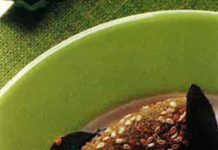 Crema di lenticchie nere con riso rosso speziato