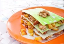Millefoglie di porri con noci, patate e tempeh